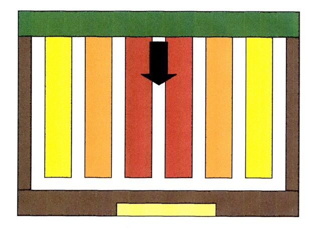 Ein Start mit den Mittelwänden, z.B. im Mai beim Zuchtansatz, ist nicht ideal, da die zugegebene Weiselzelle zum Schlupf die beste Umgebung nur zwischen zwei Brutwaben in der Beutenmitte hat.