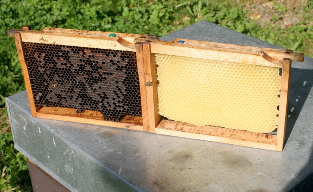 Brutwabe/ Futterwabe/ Mittelwand (von links